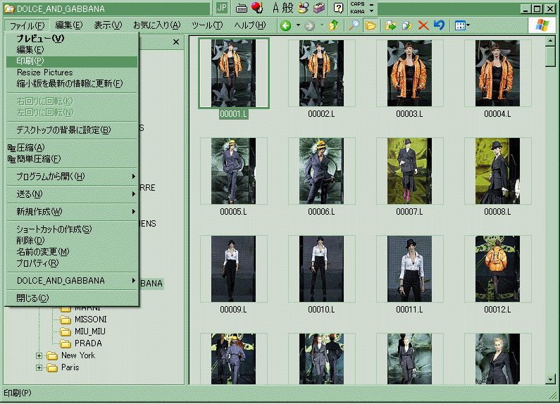 印刷対象のファイルを1つだけ選んでおき、ファイルメニューの印刷をクリックします。