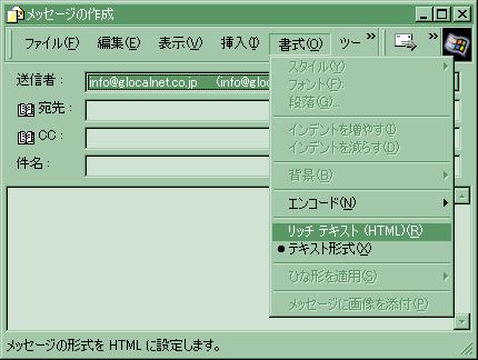 書式メニューの「リッチテキスト(HTML)」を選択します。