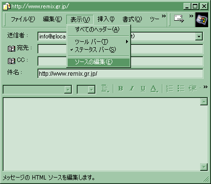 表示メニューの「ソースの編集」をチェックします。